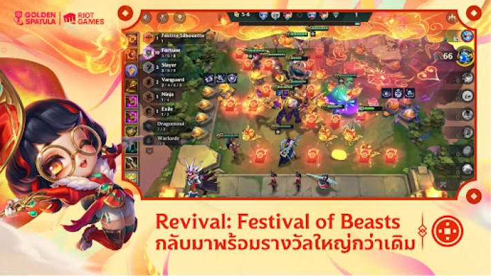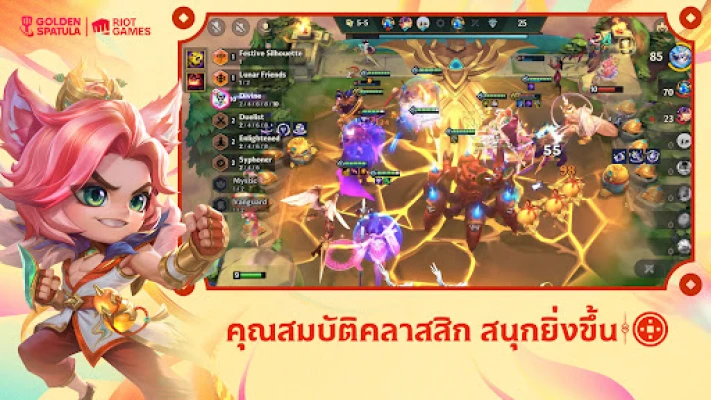 ดำดิ่งสู่สังเวียนกลยุทธ์อันไร้ขีดจำกัดกับ Golden Spatula! เตรียมพร้อมผนึกกำลังเหล่านักรบผู้ยิ่งใหญ่จาก League of Legends เข้าสู่การต่อสู้อันดุเดือด เพียงคัดสรรแชมเปี้ยนที่คุณชื่นชอบ วางตำแหน่งพวกเขาอย่างชาญฉลาดบนสนามรบ แล้วเฝ้าชมกองทัพของคุณโลดแล่นเข้าห้ำหั่นศัตรูด้วยพลังที่เหนือชั้น ไม่จำเป็นต้องอาศัยการควบคุมที่ซับซ้อน แต่ทุกการตัดสินใจของคุณคือหัวใจสำคัญของชัยชนะ ไม่ว่าคุณจะอยู่ที่ไหน เวลาใด ก็สามารถเข้าถึงประสบการณ์การประลองปัญญาที่ตื่นเต้นเร้าใจนี้ได้ทันที