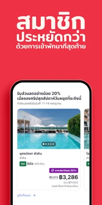 แอป Hotels.com ยกระดับประสบการณ์การเดินทางของคุณให้พิเศษยิ่งกว่าเดิม ไม่ว่าจะเป็นทริปพักผ่อนระยะสั้นหรือการผจญภัยสุดหรู คุณก็สามารถปลดล็อกสิทธิประโยชน์สุดคุ้มค่าได้ง่ายๆ เริ่มต้นด้วยการเข้าถึง 'ราคาสมาชิก*' ที่มอบส่วนลดอย่างน้อย 10% สำหรับโรงแรมชั้นนำกว่าแสนแห่งทั่วโลก สะสมรีวอร์ดได้อย่างรวดเร็วทุกครั้งที่เข้าพักจากตัวเลือกที่พักกว่า 500,000 แห่ง ทำให้ทุกการเดินทางกลายเป็นการลงทุนที่คุ้มค่า และสำหรับสมาชิกระดับ Silver และ Gold เพลิดเพลินกับสิทธิพิเศษเหนือระดับจากที่พัก VIP Access ที่คัดสรรมาเป็นอย่างดี ให้ทุกการเข้าพักของคุณเปี่ยมไปด้วยความประทับใจและความพิเศษไม่เหมือนใคร
