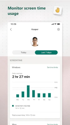 สร้างสมดุลชีวิตดิจิทัลของครอบครัวด้วยการจัดการเวลาหน้าจอที่ยืดหยุ่น กำหนดขีดจำกัดการใช้งานสำหรับแอปและเกมเฉพาะบน Android, Xbox และ Windows หรือตั้งค่าเวลาการใช้งานรวมของอุปกรณ์บน Xbox และ Windows ช่วยให้บุตรหลานได้เรียนรู้การบริหารเวลาอย่างมีวินัย หากลูกต้องการเวลาเพิ่มเติม คุณจะได้รับการแจ้งเตือนเพื่อพิจารณา รายงานกิจกรรมดิจิทัลรายสัปดาห์ยังมอบข้อมูลเชิงลึกเกี่ยวกับพฤติกรรมการใช้งานออนไลน์ ช่วยให้ผู้ปกครองเข้าใจและสามารถเริ่มบทสนทนาที่สร้างสรรค์กับบุตรหลานเกี่ยวกับนิสัยดิจิทัลที่ดี
