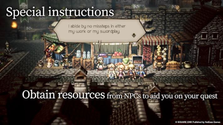 ก้าวเข้าสู่สนามรบด้วยระบบการต่อสู้แบบเทิร์นเบสอันเป็นเอกลักษณ์ของซีรีส์ ที่มอบความลึกซึ้งและกลยุทธ์ไร้ขีดจำกัด สร้างทีมในฝันของคุณจากตัวละครมากฝีมือถึง 8 อาชีพที่แตกต่างกัน ไม่ว่าจะเป็นนักรบผู้กล้าหาญ, นักเต้นผู้สง่างาม, พ่อค้าผู้ชาญฉลาด, บัณฑิตผู้เปี่ยมความรู้, เภสัชกรผู้รักษา, โจรผู้เงียบงัน, นักล่าผู้แม่นยำ หรือนักบวชผู้ศักดิ์สิทธิ์ แต่ละอาชีพมาพร้อมความสามารถเฉพาะตัว ให้คุณวางแผนผสานทักษะและสร้างคอมโบสุดอลังการเพื่อพิชิตศัตรูที่ท้าทาย มอบประสบการณ์ JRPG ที่สมบูรณ์แบบเทียบเท่าเกมคอนโซลสู่มือคุณ