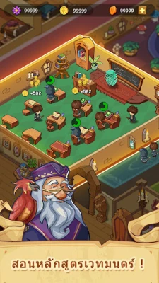สัมผัสประสบการณ์การจำลองที่สมจริงและเต็มเปี่ยมไปด้วยมนต์ขลัง ด้วยแอนิเมชันที่น่าทึ่งและกราฟิก 3 มิติอันงดงามที่จะพาคุณดื่มด่ำไปกับทุกรายละเอียดของโรงเรียนเวทมนตร์แห่งนี้ แม้ในยามที่คุณไม่อยู่ โรงเรียนของคุณก็ยังคงดำเนินต่อไป สร้างรายได้ออฟไลน์อย่างต่อเนื่อง เพื่อให้การพัฒนาไม่หยุดชะงัก ร้านค้าเวทมนตร์ยังคงผลิตเหรียญทองให้คุณได้สะสมอยู่เสมอ เตรียมพร้อมรับมือกับความท้าทายทางธุรกิจอันหลากหลาย เลือกสาขาวิชา เครื่องมือเวทมนตร์ และกลยุทธ์การเติบโตที่แตกต่างกันเพื่อสร้างเส้นทางแห่งความสำเร็จของโรงเรียนคุณ สำรวจทุกซอกทุกมุมของโรงเรียนเวทมนตร์แห่งนี้ ค้นพบรางวัลและความสำเร็จมากมายที่รอคุณอยู่ในการเดินทางครั้งยิ่งใหญ่